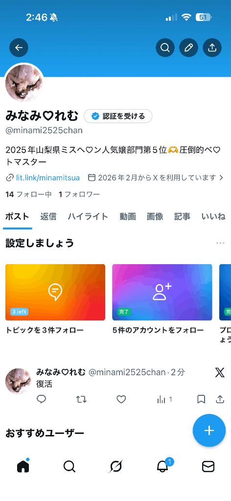 minami2525chanで始めたよ!フォローしてね